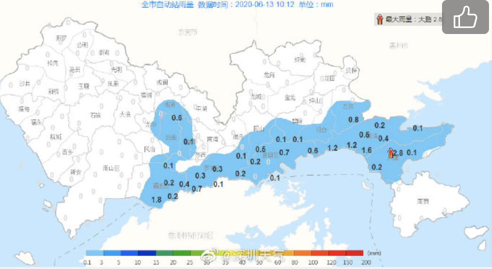 深圳市氣象臺(tái)2020年06月13日16時(shí)56分發(fā)布:預(yù)計(jì)17-20時(shí),全市多云到陰天,有(雷)陣雨;降雨入夜后趨于明顯;偏東到東南風(fēng)4-5級,陣風(fēng)6-8級,風(fēng)力逐漸加大;目前全市雷電預(yù)警信號和臺(tái)風(fēng)藍(lán)色預(yù)警信號生效中,外出注意交通行駛安全。