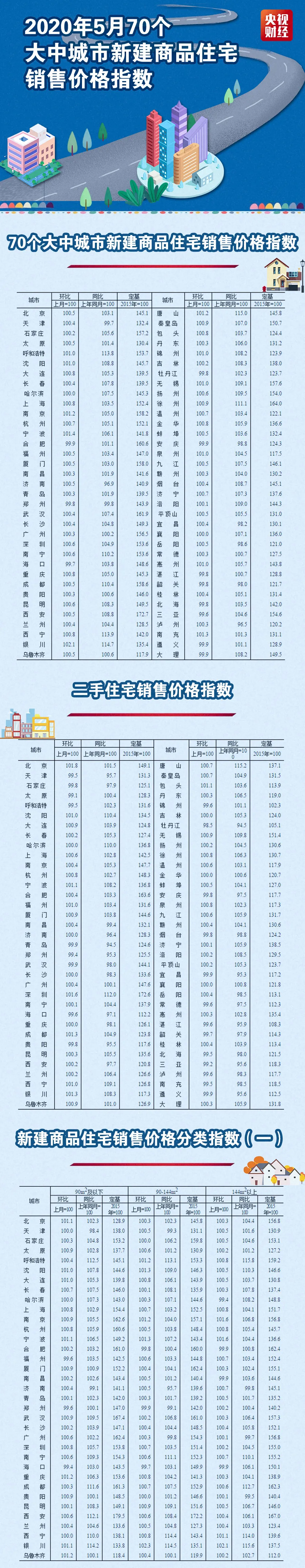 央視財經(jīng)2020年6月15日訊 國家統(tǒng)計局今天發(fā)布的5月份70大中城市新建商品住宅銷售價格顯示:一二三線城市新建商品住宅銷售價格環(huán)比漲幅均略有擴(kuò)大,二手住宅漲幅與上月相同或微擴(kuò)。環(huán)比看,銀川漲幅2.1%領(lǐng)跑。