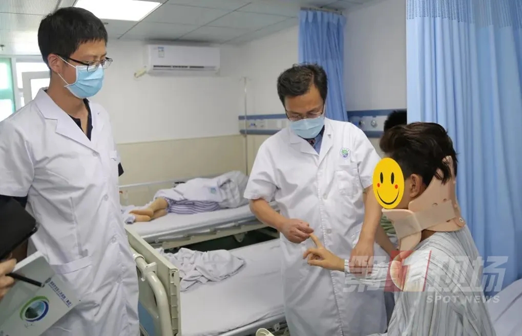 小威(化名):我當(dāng)時(shí)在玩手機(jī),感覺(jué)脖子酸痛酸痛的,脖子后面突然刺痛了一下,我以為是抽筋。我以為睡醒就好,后來(lái)脖子越來(lái)越痛,身體完全動(dòng)不了。