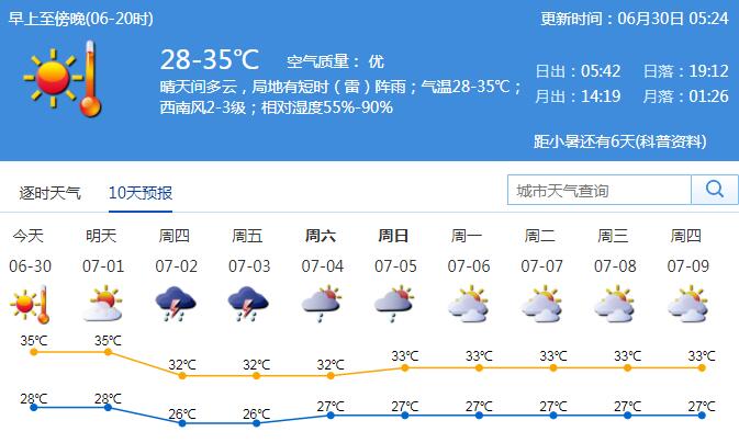 高溫模式還將持續(xù),有分散陣雨 戶外活動及時補(bǔ)充水分