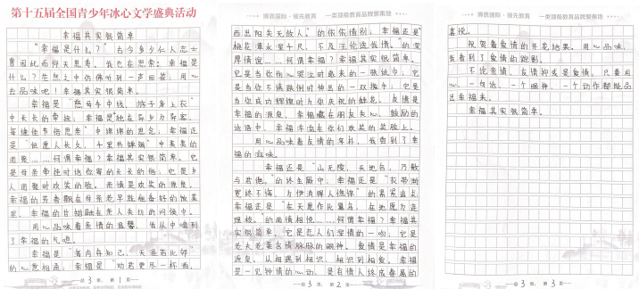 據(jù)活動組委會相關(guān)負(fù)責(zé)人介紹,“第十五屆全國青少年冰心文學(xué)盛典”以“2020文學(xué)之路,向上的力量”為主題,全程公益免費,設(shè)置了小學(xué)低年級組(1-3年級 )、小學(xué)高年級組(4-6年級 )、初中組、高中組、大學(xué)組、教師組、文學(xué)愛好者組等多個組別。值得注意的是,所有報名選手必須使用本次活動專用稿紙進行書寫創(chuàng)作。組委會將會根據(jù)選手報名提交的郵寄地址免費郵寄活動專用稿紙,每人僅限領(lǐng)取5張。選手完成手寫作品以后,將作品掃描或拍照發(fā)送到全國青少年冰心文學(xué)寫作指導(dǎo)中心深圳組委會指定郵箱szbxwx@126.com(冰心文學(xué)深圳)或gdbxwx@126.com(冰心文學(xué)廣東)。