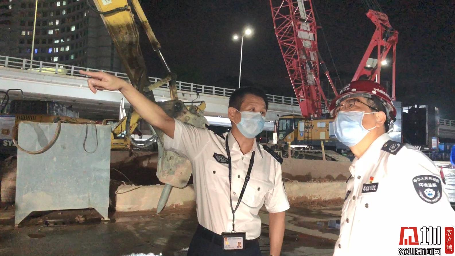 深圳市生態(tài)環(huán)境綜合執(zhí)法支隊支隊長許化一行聯(lián)合深圳市生態(tài)環(huán)境局福田管理局突擊檢查了黃木崗綜合交通樞紐一工區(qū)和華強(qiáng)云產(chǎn)業(yè)園兩處施工工地,均未發(fā)現(xiàn)違規(guī)超時施工行為。