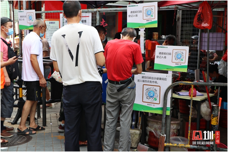 進(jìn)入福田農(nóng)批市場需出示健康碼,測量體溫。