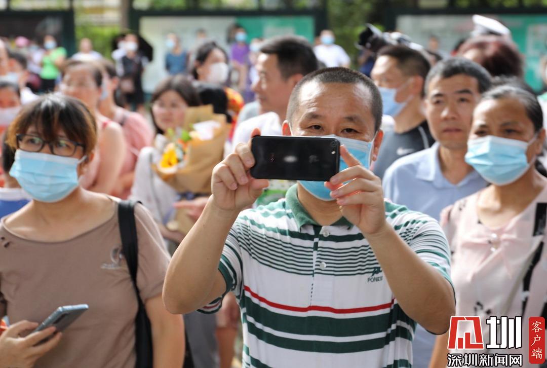 家長舉起手機,靜候于深圳高級中學考點門口。