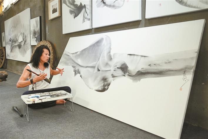 鄭泰均有個心愿,希望能在深圳找到一條河流,放一只大型竹筏,將宣紙鋪滿,在自由漂流中作畫。他曾在寶安至美術(shù)館開個展的時候留意過旁邊的一條河流,當(dāng)時那條河還散發(fā)著難聞的氣味,但是經(jīng)過近些年深圳在“水治理”方面的大力投入,去年他再去美術(shù)館時,那條河河水已經(jīng)變得清澈,臭味難尋,正是他理想中的那條河流。他想,很快,這個心愿就能實(shí)現(xiàn)了。