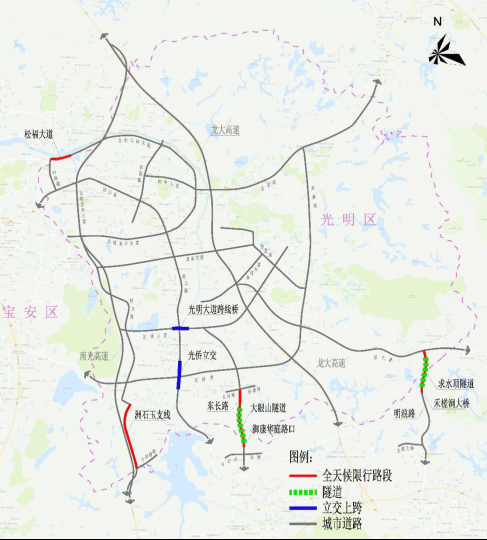 部分市民提出寶安大道(不含輔道)、107國道(不含輔道)、松白路、靜寧路、公常路、公園路、前進一路、創(chuàng)業(yè)一路、公明北環(huán)、寶石路、前進二路由于機動車流量大、車速快,希望上述道路禁止通行電動二輪車。