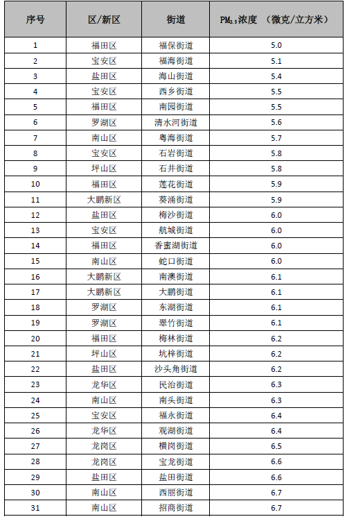 見圳客戶端·深圳新聞網(wǎng)2020年7月9日訊(見圳客戶端、深圳新聞網(wǎng)記者 葉梅 實(shí)習(xí)記者 徐樂釗)記者從深圳市生態(tài)環(huán)境局獲悉,2020年6月,全市74個(gè)街道PM2.5濃度在5.0-10.2微克/立方米之間,均值為7.0微克/立方米。