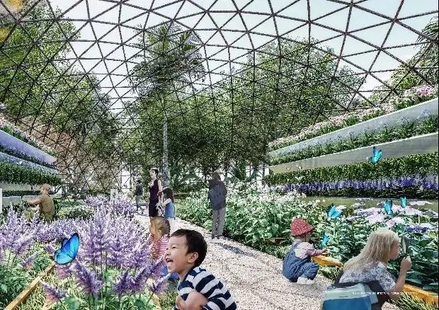 為生態(tài)森林公園,它模擬深圳的山地森林生境,營造大灣區(qū)山地森林的典型生境群落,在城市中心營造出自然教育與沉浸式學(xué)習(xí)的環(huán)境,設(shè)置生態(tài)教室、植物溫室等,形成戶外自然科普中心和自然主題為主的藝術(shù)花園。