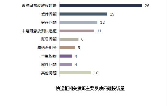 2020年上半年,深圳市消委會共收到93宗有關快遞柜的投訴,其中,深圳市豐巢科技有限公司(以下簡稱“豐巢”)相關投訴76宗,占快遞柜總投訴量的81.72%。主要反映未經同意收取超時費問題、丟件問題、寄存問題、未經同意將快遞放到快遞柜等問題。