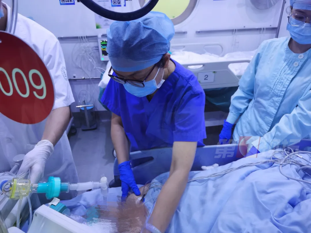 當(dāng)時人是神智不清的,有頻繁的抽搐,考慮這個頻繁抽搐,還是跟她心跳驟停之后,大腦缺血、缺氧狀態(tài)有關(guān)系。我們樓下?lián)尵仁?,很快就給她一個評估全身的狀態(tài),再一個就是第一時間,我們就給她緊急安排了高壓氧的治療。