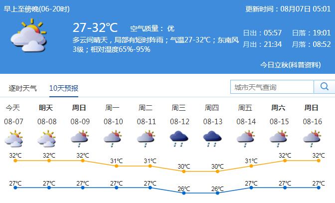 見圳客戶端·深圳新聞網(wǎng)2020年8月7日訊 降雨暫緩,高溫又卷土重來。8月7日白天,全市以多云天氣為主,偶有短時(shí)陣雨,早晚最低氣溫在27℃左右,中午前后最高氣溫在32℃左右,漸趨悶熱。市內(nèi)維持2-3級(jí)東南風(fēng);空氣濕度大,相對(duì)濕度65%-90%。