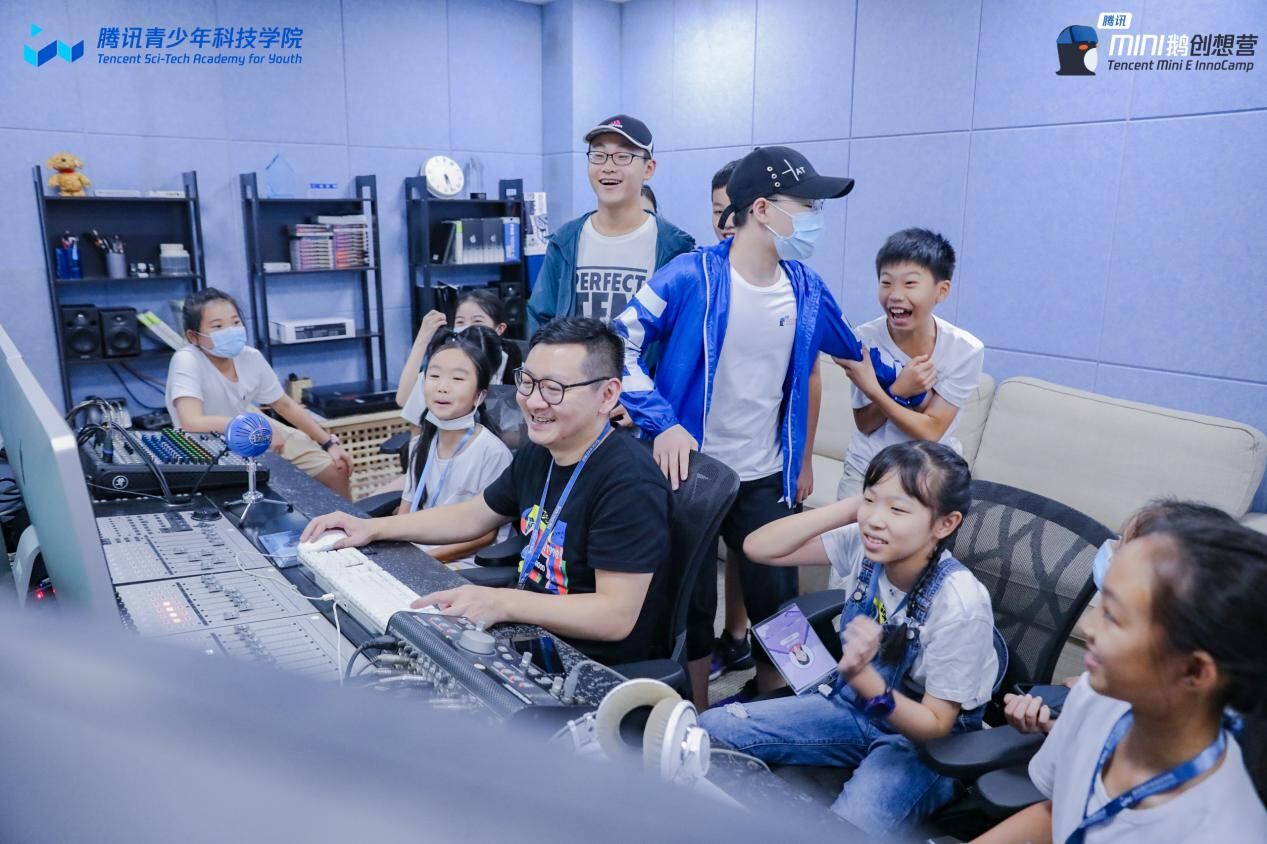 騰訊CROS音頻團(tuán)隊(duì)導(dǎo)師在專(zhuān)業(yè)錄音棚指導(dǎo)學(xué)員們進(jìn)行音頻錄制與剪輯
