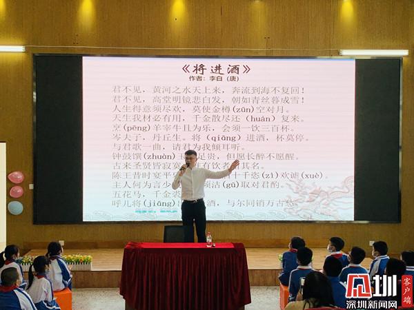 深圳新聞網(wǎng)訊(深圳新聞網(wǎng)記者 彭桂紅 通訊員 梁文雅)為進(jìn)一步弘揚中華優(yōu)秀傳統(tǒng)文化,近日,深圳市錦田小學(xué)特邀青年文化學(xué)者、深圳市百姓學(xué)習(xí)之星、深圳市公益閱讀推廣人、深圳市首屆家園文化文學(xué)會會長晉玉東為廣大師生開展了一場別開生面的“中國古典詩詞朗誦藝術(shù)鑒賞——兼談如何朗誦好一首詩”公益文化講座。羅湖區(qū)錦田小學(xué)德弘校區(qū)副校長劉向陽、羅湖區(qū)錦田小學(xué)德弘校區(qū)主任張俊暉、羅湖區(qū)未來學(xué)校主任謝淑紅、德弘二年級家委代表以及語文科組老師,一同參加。活動由班主任梁文雅和學(xué)生劉沛東、張家琪共同主持,近200名學(xué)生參加了講座活動。整場講座師生熱情高漲,主講嘉賓深入淺出、娓娓道來,參與學(xué)生思維活躍、表現(xiàn)積極,帶動校園形成了學(xué)習(xí)詩詞文化的良好氛圍。