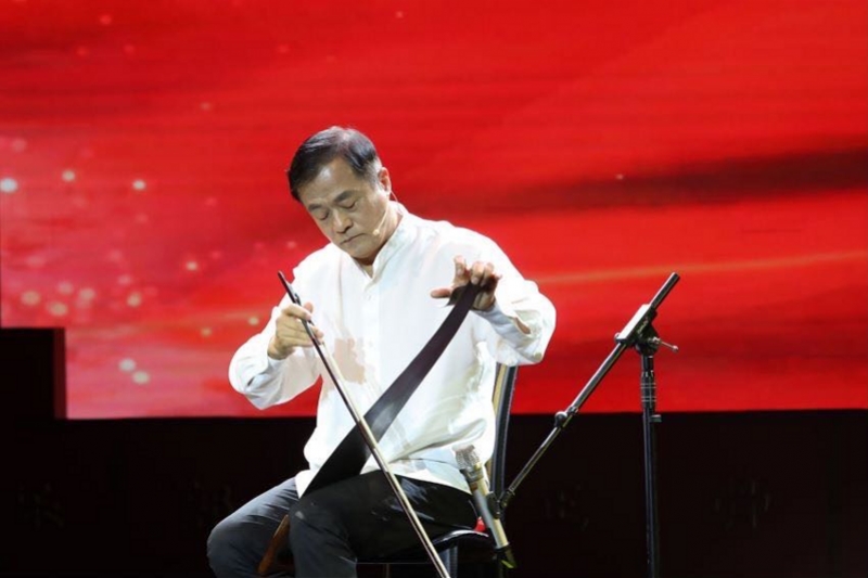 隨后,《鋸琴藝術(shù)》傳承人李元慶在不斷變換鋸片彎曲角度、拉動(dòng)馬尾弓期間,奏出一首長(zhǎng)達(dá)近4分鐘的悠揚(yáng)樂(lè)曲。他說(shuō),自己拉了30年鋸琴,希望讓更多人了解這門(mén)非遺藝術(shù)。在他的鼓勵(lì)下,觀(guān)眾席里兩名小學(xué)生舉手上臺(tái),用鋸琴敲出長(zhǎng)短不一的音符。