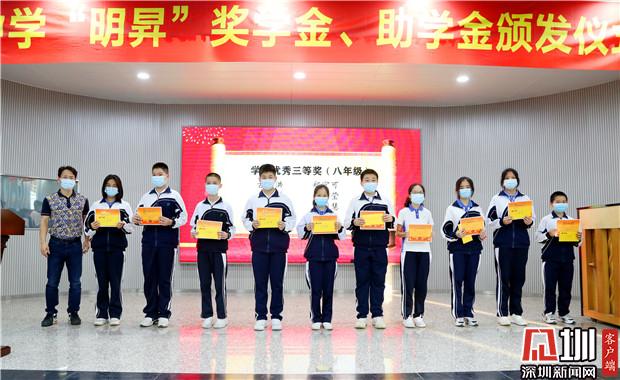 當(dāng)天,144名學(xué)子及三個(gè)團(tuán)隊(duì)分別獲得特長(zhǎng)突出獎(jiǎng)、學(xué)業(yè)進(jìn)步獎(jiǎng)、學(xué)業(yè)優(yōu)秀獎(jiǎng)一二三等獎(jiǎng)等不同獎(jiǎng)勵(lì)。同時(shí)頒發(fā)的還有中考優(yōu)秀獎(jiǎng)、中考卓越獎(jiǎng)、中考狀元獎(jiǎng)等獎(jiǎng)項(xiàng),由已畢業(yè)的布心學(xué)子家長(zhǎng)返校代為領(lǐng)獎(jiǎng)。當(dāng)天還有4名老師受到表彰。2018年7月明昇集團(tuán)為布心中學(xué)設(shè)立108萬元獎(jiǎng)學(xué)基金,每學(xué)期發(fā)放一次,獎(jiǎng)勵(lì)學(xué)業(yè)優(yōu)秀、學(xué)業(yè)進(jìn)步、特長(zhǎng)突出的學(xué)生。本學(xué)期該獎(jiǎng)學(xué)金第五次發(fā)放,到目前為止獎(jiǎng)勵(lì)學(xué)生近1000人次。從今年6月份開始,還增設(shè)了明昇助學(xué)金。