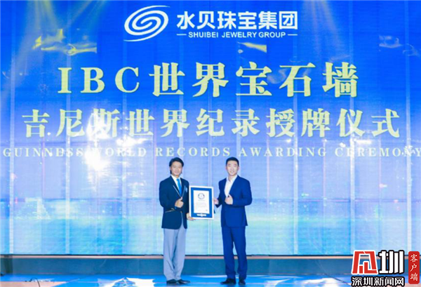在本次“天工精制”見證盛典活動上,舉行了IBC世界寶石墻吉尼斯世界紀(jì)錄授牌儀式,水貝珠寶集團(tuán)副總裁盧森榮從吉尼斯世界紀(jì)錄官方認(rèn)證官楊紹鵬手中接過認(rèn)證證書,標(biāo)志著IBC世界寶石墻挑戰(zhàn)世界“面積最大,珠寶種類最豐富”的寶石壁畫紀(jì)錄成功。全場嘉賓一同親歷“世界之最”的誕生,高端賽事見證國際殊榮,IBC世界寶石墻閃耀而來,這件劃時(shí)代的藝術(shù)作品成為世界珠寶文化的傳播載體與精神堡壘,是一個(gè)偉大的壯舉。