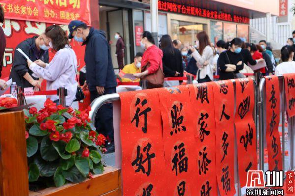 據(jù)悉,羅湖區(qū)書法家協(xié)會(huì)于2021年春節(jié)前夕組織一批優(yōu)秀書法家深入社區(qū)基層,現(xiàn)場(chǎng)為群眾書贈(zèng)春聯(lián),書贈(zèng)福字,目前活動(dòng)先后在羅湖美術(shù)館南廣場(chǎng)、漁民村、羅湖區(qū)委等地舉辦多場(chǎng)。羅湖區(qū)書法家書贈(zèng)春聯(lián)活動(dòng)已連續(xù)舉辦了22年,深受群眾喜愛,成為羅湖的一項(xiàng)品牌活動(dòng)。