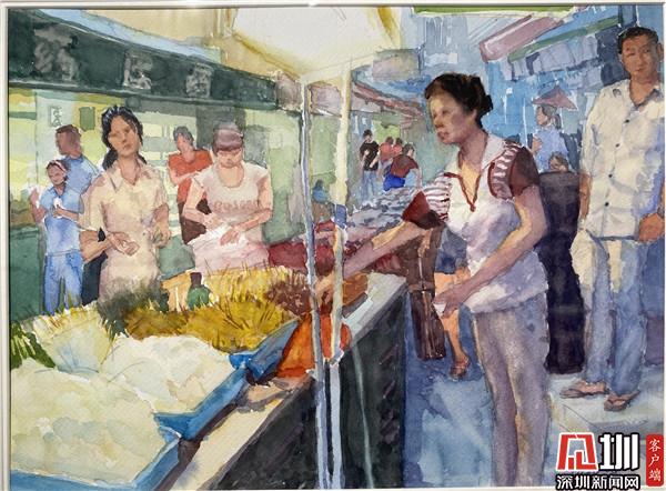 據(jù)了解,《東門這地方》展覽以東門景觀為題材,創(chuàng)作者中不乏地地道道的東門原住民,通過藝術畫作的形式詮釋和表達東門的歷史文化。出生在東門,求學也在東門的張躍侖在接受記者采訪時表示,因為自己就是土生土長的東門人,所以對東門的感情深厚,希望通過類似活動,來實現(xiàn)“本土文化的本土表達”,也希望能引起許多老深圳人對東門的回憶,讓更多人認識東門的格局。其中他提到,此次畫展的亮點增加了不少畫家在去年疫情的時所作的作品,以自己的所見所聞,表達對東門生活的新認知。