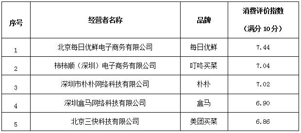發(fā)布深圳地區(qū)生鮮電商行業(yè)消費(fèi)評(píng)價(jià)指數(shù)排行榜