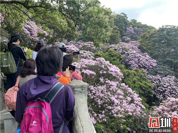 “大家平時有沒有來爬過梧桐山呢?你們知道梧桐山的最高峰是多少嗎?在梧桐山一共種植了多少毛棉杜鵑呢?”初入梧桐山,醫(yī)護人員們在游覽車上看著一路盛放的杜鵑,導賞員在旁向大家介紹梧桐山風景區(qū)的特色和花會盛況。據(jù)了解,3月18日至4月6日是深圳市梧桐山第六屆毛棉杜鵑花會,為進一步落實關愛抗疫醫(yī)護人員,羅湖面向抗疫一線醫(yī)護人員開設專場導賞,由梧桐山優(yōu)秀導賞員提供自然導賞,領略景區(qū)風光、認識沿途植物等,讓守在抗疫一線的白衣戰(zhàn)士領略最美的春光。