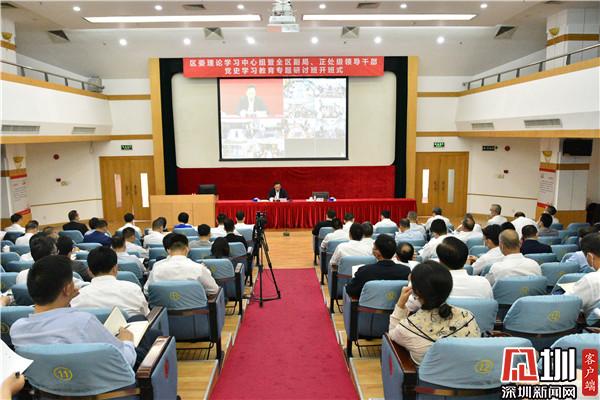 見圳客戶端·深圳新聞網(wǎng)4月8日訊(記者 劉嘉敏/文 見習(xí)記者 邱婕/圖)4月7日,羅湖區(qū)委理論學(xué)習(xí)中心組暨全區(qū)副局、正處級領(lǐng)導(dǎo)干部黨史學(xué)習(xí)教育專題研討班開班。此次研討班的主要任務(wù)是,以習(xí)近平新時代中國特色社會主義思想為指導(dǎo),深入學(xué)習(xí)貫徹習(xí)近平總書記在黨史學(xué)習(xí)教育動員大會上的重要講話精神,認(rèn)真落實黨中央決策部署和省委、市委工作安排,高標(biāo)準(zhǔn)、高質(zhì)量推進黨史學(xué)習(xí)教育走深走實,進一步統(tǒng)一思想、提高認(rèn)識,從黨的百年偉大奮斗歷程中汲取前進的智慧和力量,高質(zhì)量推進“灣區(qū)樞紐、萬象羅湖”建設(shè),以優(yōu)異成績迎接建黨100周年。區(qū)委書記羅育德作動員講話暨主題報告,區(qū)委副書記、區(qū)長劉智勇主持開班式。