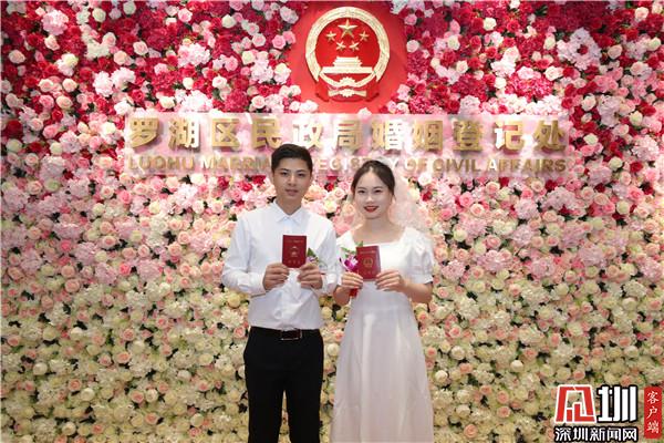 羅湖區(qū)婚姻登記處將疫情防控與高質(zhì)量登記服務(wù)有機(jī)結(jié)合,在準(zhǔn)備好充足防疫物資的基礎(chǔ)上,現(xiàn)場引導(dǎo)新人完成防疫流程,完成體溫測量和個人信息登記;同時聯(lián)動多部門共同合作,確保疫情防控常態(tài)化下的婚姻登記服務(wù)工作平穩(wěn)有序開展。5月20日當(dāng)天,羅湖婚姻登記處辦理結(jié)婚登記218對。
