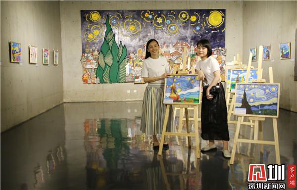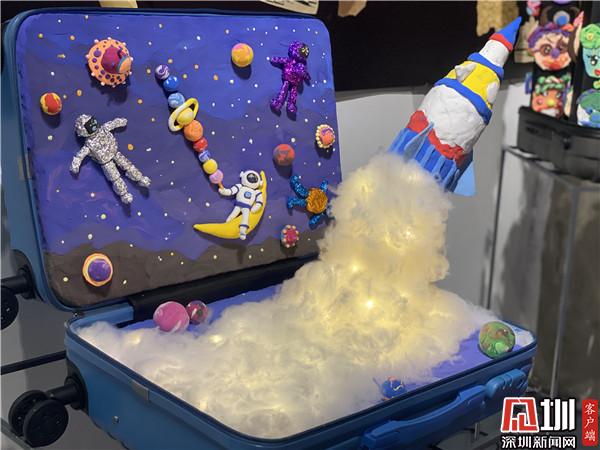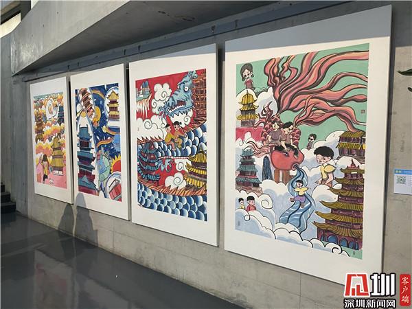 騎著小白兔在天上看四大名樓、把四大名樓帶到宇宙里、在四大名樓上面遇見天空之城……現(xiàn)場,幾幅畫作吸引觀賞者駐留觀看。“歷代文人墨客用千古名篇頌揚四大名樓,而這個《中國四大名樓》系列作品,孩子們將與深圳共成長的切身感受,與歷史畫卷中的四大名樓發(fā)生靈感碰撞,以簡單的水墨畫表現(xiàn)形式,呈現(xiàn)出不可思議的藝術(shù)效果。”作品指導(dǎo)老師于雪在采訪時介紹說道,這一系列的作品,是三四年級的孩子創(chuàng)作,身高沒有很高,但是作品的畫幅很大,而且用的材質(zhì)是宣紙,比較容易破,因此孩子們在繪畫過程中也學(xué)會了調(diào)整身體的位置和紙張比例,以及更加小心翼翼地保護自己的畫作,這也是他們創(chuàng)作中有趣的過程。