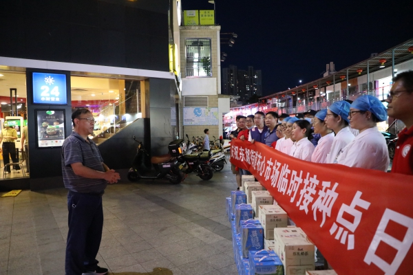 “大家辛苦了,感謝大家的辛勤付出!”在布心市場接種點,程時菊首先向全體工作人員致以誠摯的感謝,并叮囑他們要注意勞逸結(jié)合,做好自身防護。他強調(diào)全體工作人員面對艱苦的工作環(huán)境,沒有絲毫退縮,努力克服種種困難,始終以飽滿的熱情、昂揚的斗志,堅守崗位、加班加點、辛勤工作,每天圓滿完成了新冠疫苗接種清零任務(wù)。目前深圳疫情防控形勢嚴峻,希望大家繼續(xù)發(fā)揚攻堅克難、甘于奉獻的精神,全力加快新冠疫苗接種速度,為人民群眾的生命健康筑起堅實屏障。