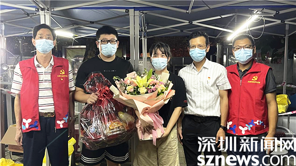 東湖街道黨工委、街道總工會被李忠麗夫婦的故事所打動,為夫婦二人送上了鮮花及水果,為他們這種舍小家、為大家的精神點(diǎn)贊,并表達(dá)了對醫(yī)護(hù)人員崇高的敬意與感謝。