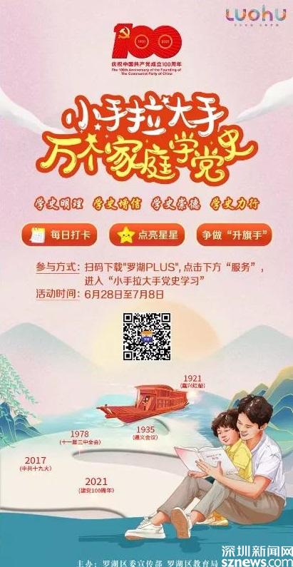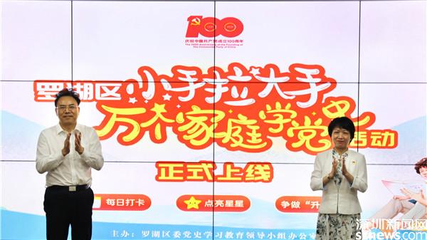 讀特客戶端·深圳新聞網(wǎng)2021年6月28日訊(記者 劉嘉敏 彭桂紅 通訊員 李瑩瑩)“七一”將至,為慶祝中國共產(chǎn)黨成立100周年,進一步推動羅湖區(qū)黨史學習教育走深走實,羅湖區(qū)委宣傳部聯(lián)合羅湖區(qū)教育局于6月28日在“羅湖Plus”客戶端正式推出“小手拉大手”萬個家庭學黨史活動。當天,羅湖區(qū)委常委、宣傳部部長呂漫妮,羅湖區(qū)副區(qū)長、二級巡視員宋強等領導出席啟動儀式。
