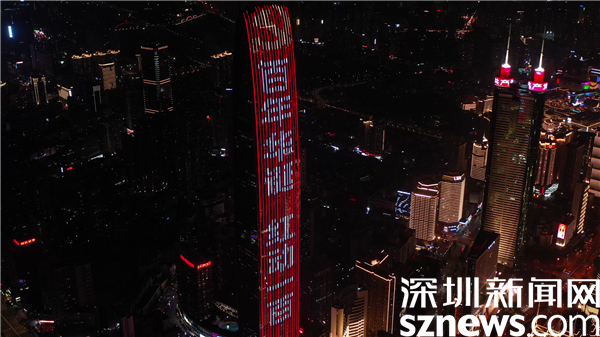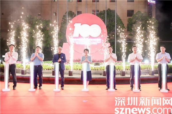 隨著參會領(lǐng)導(dǎo)和嘉賓按下儀式啟動鍵,羅湖地標(biāo)建筑京基100被“點(diǎn)亮”,滾動顯示“百年華誕 紅動一百”、“崢嶸歲月 百年風(fēng)華”祝福語,噴泉廣場亮如白晝,映入觀眾眼中,現(xiàn)場發(fā)出陣陣贊嘆聲,將慶祝的氛圍推向高潮。