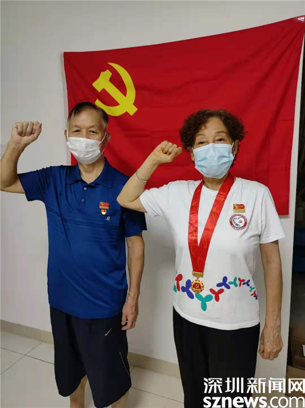 劉喜蘭是長嶺社區(qū)惠名花園的一位高達(dá)71歲的老黨員,“聽黨話、跟黨走”是她畢生的追求。7月1日這天,她收到黨組織頒發(fā)的“光榮在黨50年”紀(jì)念章,她已經(jīng)入黨52周年了。她的老伴龔訓(xùn)虎及大兒子龔競也是黨員,龔訓(xùn)虎大爺也已經(jīng)75歲高齡了,入黨接近50年。退休前,她和老伴都是光榮的人民教師,一生在湖南益陽教書育人,為社會培養(yǎng)了很多棟梁之才,2007年退休后,她和老伴來到深圳,繼續(xù)發(fā)揮余熱,積極參與社區(qū)義工活動。