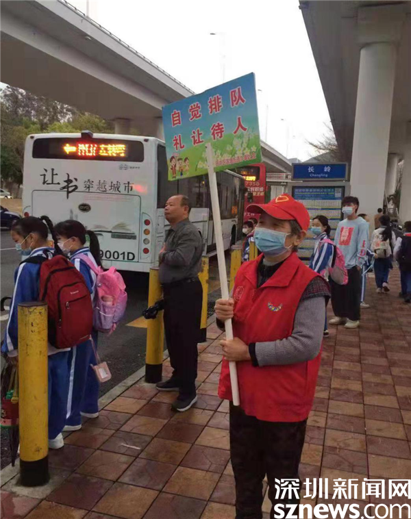 蓮塘街道長嶺社區(qū)的趙文英是一位72歲的老人,老家在河南信陽。退休前,她是一所中專學(xué)校的醫(yī)護(hù)教師,退休后,她隨子女來到深圳。有天,她無意間注意到長嶺社區(qū)長嶺公交站來往車輛較多,上下學(xué)期間該公交站小朋友較多,如果沒有一個人進(jìn)行現(xiàn)場管理或指引,很容易發(fā)生意外事故。于是她主動無償堅(jiān)持在長嶺公交站臺做義工維持秩序,用一片愛心去守護(hù)孩子的安全,這一做就是好幾年。