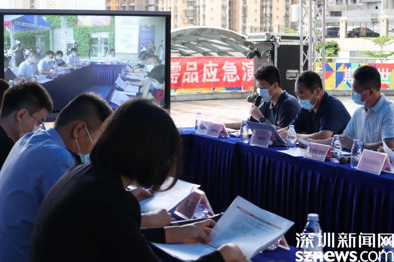 當天下午3點,隨著本次演練現(xiàn)場指揮長、深圳市商務局副局長簡政下達演練開始指令,活動正式開始。本次演練分為兩個場景,首先演練因極端天氣影響造成某行政區(qū)域生活必需品供應面臨供應不足造成的短缺,市場供應方面演練突發(fā)事件應急處置;然后是受新冠疫情影響部分小區(qū)進行封閉封控管理,演練封控區(qū)域生活物資供應應急保障處置。
