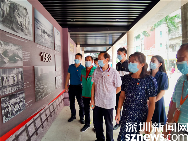會后,吳愛華一行到紅崗西村廣場參觀了改造后的文化長廊,在老兵們的介紹下,吳愛華深刻感受到了老兵們當年為深圳建設(shè)無私奉獻的愛國之情。她表示,文化長廊真正將深圳基建工程兵這個群體的拓荒史和不怕苦、不怕累、頑強拼搏、勇于奮斗的“拓荒?!本裾故镜昧芾毂M致。