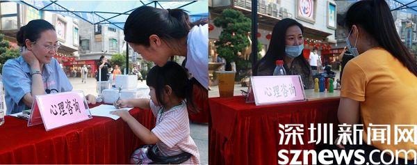 活動當(dāng)天,“心靈援助驛站”的兩名心理老師也來到現(xiàn)場,用專業(yè)、輕松的心理疏導(dǎo)方式為群眾答疑解惑,引導(dǎo)群眾以樂觀、積極向上的心態(tài)面對生活。其中,唐玲老師的家庭格盤治療法(一盤顏色各異的“小人偶”)吸引了不少市民圍觀。