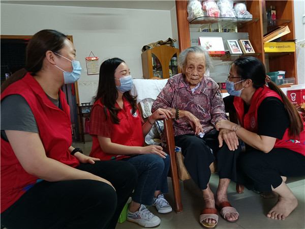 在鐘錦云老人家里,85歲的鐘阿姨挨個跟年輕的社工握手,一口一個乖女,笑著說:“你們真乖啊,又來看鐘姨了,謝謝你們啊?!边@兩年,社工經(jīng)常登門看望,她總是喜歡叫社工乖女,與社工談笑間親如家人。社工轉達了社區(qū)黨委對老人的問候,并祝老人中秋快樂。分別時,老人不舍地將大家送到樓梯間,一再叮囑有空就來玩。