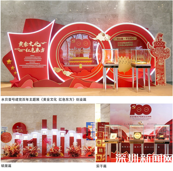 水貝壹號作為多家上市珠寶公司的總部基地,石妍說,作為黃金珠寶行業(yè)發(fā)展的見證者和實踐者,水貝壹號始終堅持以黨建為重要抓手,弘揚(yáng)光榮傳統(tǒng)、賡續(xù)紅色血脈,為熱烈慶祝中國共產(chǎn)黨成立100周年,回顧中國共產(chǎn)黨波瀾壯闊的奮斗歷程,熱情歌頌建黨百年的輝煌業(yè)績,從7月1日始至10月31日止為期100天,推出以“黃金文化紅色東方”為主題的系列展覽活動,展覽內(nèi)容包括“1921年一大南湖紅船”滌蕩百年文創(chuàng)作品展、“三?!本裎膭?chuàng)作品展、《深圳八景》金箔剪紙藝術(shù)展等,獻(xiàn)禮建黨百年華誕。每天吸引大批慕名而來的黨員和市民圍觀打卡,近5000余人次到場參加,媒體曝光傳播10萬余次。