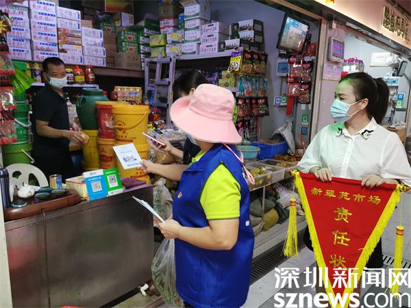 緊接著,東曉街道領(lǐng)導(dǎo)為4名新翠苑市場“治理小縱隊”隊長頒發(fā)“片區(qū)包干責(zé)任狀”,各“小縱隊”分頭開展“行走街市”“文明創(chuàng)建”和“門前三包”行動。值得一提的是,蘭花社區(qū)黨委將新翠苑市場劃分為4個包干片區(qū),緊扣黨建引領(lǐng)基層治理主弦,組建與包干片區(qū)相對應(yīng)的“治理小縱隊”。每個縱隊以社區(qū)工作站、新翠苑市場公司、市監(jiān)所及消防站多方責(zé)任主體的黨員為核心,“銀發(fā)”志愿者、清潔工、市場商戶等多元主體共同組成,接受社區(qū)黨委的統(tǒng)一調(diào)度,同時每個縱隊統(tǒng)籌承擔(dān)所屬片區(qū)環(huán)境衛(wèi)生、安全巡查、創(chuàng)文迎檢、食品安全等多項職能,實(shí)現(xiàn)“多能合一,一隊多能”力量整合,通過頒發(fā)責(zé)任狀的形式進(jìn)一步強(qiáng)化大家在街市治理中的先鋒意識、主人翁意識和責(zé)任意識,使“治理小縱隊”成為蘭花社區(qū)黨委黨建引領(lǐng)基層精細(xì)化治理的“繡花針”。