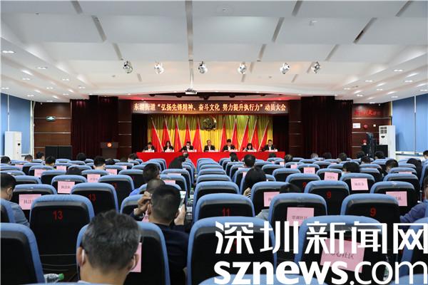 讀特客戶端·深圳新聞網(wǎng)2021年11月19日訊(記者 郭含笑 通訊員 黃貽凱)感恩奮進(jìn)跟黨走,緊鑼密鼓再出發(fā)。羅湖區(qū)第八次黨代會(huì)、區(qū)“兩會(huì)”的順利閉幕是一個(gè)結(jié)束,也是羅湖新征程、新使命、新奮斗的開始。為弘揚(yáng)羅湖光榮傳統(tǒng)、賡續(xù)羅湖血脈傳承,在街道全體黨員干部中形成憋足一口氣趕超奔跑、鉚足一股勁狠抓落實(shí)的風(fēng)氣,把先鋒精神、奮斗文化轉(zhuǎn)化為強(qiáng)大執(zhí)行力、踐行在奮斗新征程,11月19日下午,深圳市羅湖區(qū)東湖街道召開“弘揚(yáng)先鋒精神、奮斗文化 努力提升執(zhí)行力”動(dòng)員大會(huì)。街道黨工委書記程時(shí)菊等處級(jí)干部,各辦、中心全體在編人員,各社區(qū)黨委書記、副書記、副站長(zhǎng)、城管專干共100余人參加會(huì)議。