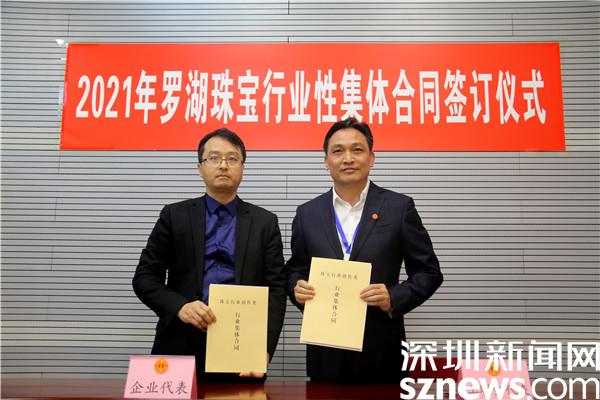 值得一提的是,本次大會(huì)還融合了職工權(quán)益保障、文明城市創(chuàng)建、企業(yè)服務(wù)等內(nèi)容。在大會(huì)現(xiàn)場(chǎng),舉行了“2021年羅湖區(qū)珠寶行業(yè)集體合同簽訂儀式”。簽訂儀式上,區(qū)珠寶工聯(lián)會(huì)主席、集體協(xié)商首席代表曾志斌和羅湖區(qū)珠寶企業(yè)協(xié)商首席代表周曉航共同簽訂了《2021年羅湖區(qū)珠寶行業(yè)集體合同》,切實(shí)保障了轄區(qū)珠寶企業(yè)職工合法權(quán)益;隨后,由“廣東省五一勞動(dòng)獎(jiǎng)?wù)隆鲍@得者郭夷錟宣讀了主題為《攜手新征程,共創(chuàng)新未來(lái)》的行業(yè)倡議書(shū),號(hào)召全區(qū)珠寶企業(yè)和職工,在深入學(xué)習(xí)貫徹習(xí)近平新時(shí)代中國(guó)特色社會(huì)主義思想、愛(ài)崗敬業(yè)、敢為人先、誠(chéng)信經(jīng)營(yíng)等方面爭(zhēng)做表率;同時(shí),為更好地服務(wù)轄區(qū)企業(yè),大會(huì)特地邀請(qǐng)了羅湖區(qū)企業(yè)服務(wù)中心陳良同志為與會(huì)代表介紹企業(yè)服務(wù)平臺(tái)建設(shè)與運(yùn)用情況。
