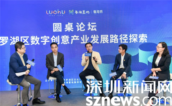 活動最后,深圳市文體局文化產(chǎn)業(yè)處處長熊德昌、羅湖區(qū)文體局文產(chǎn)辦負責人周海濤、深職院數(shù)字創(chuàng)意學院院長王效杰、深圳市寶視達廣告控股有限公司董事長李志光、戴德梁行華南區(qū)項目及企業(yè)部董事楊薇等5位嘉賓,以“羅湖區(qū)數(shù)字創(chuàng)意產(chǎn)業(yè)發(fā)展路徑探索”為主題展開了精彩的探討交流,從多個角度對羅湖區(qū)產(chǎn)業(yè)政策制定、數(shù)字創(chuàng)意產(chǎn)業(yè)聚焦方向以及對未來與香港聯(lián)動的合作展望分享了各自的獨特見解。