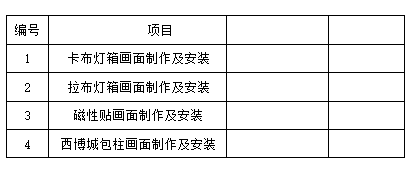 二、項目概況:本次大媒體廣告制作、安裝服務采購項目進行制作、安裝單位供應商的招標,歡迎符合資格的單位參加投標。采購范圍見下表: