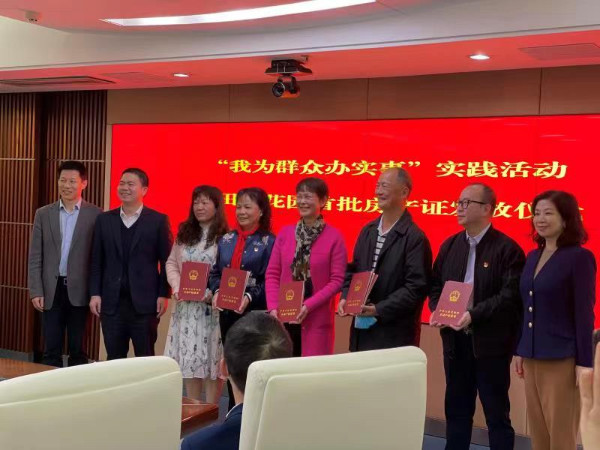 經(jīng)過5個多月的奮戰(zhàn),三大難題全部得到破解,居民辦理房產(chǎn)證的“路”被打通。12月10日完成田貝花園土地使用權(quán)證注銷抵押登記、房屋初始登記,成功辦理首批12本房產(chǎn)證并完成抵押登記。