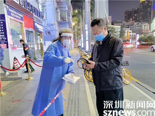 讀特客戶端·深圳新聞網(wǎng)2022年1月10日訊(記者 劉嘉敏 通訊員 楊紀(jì)歐)“來了來了,又來了一個(gè)!請打開健康碼,測體溫?!痹诹_湖區(qū)桂園街道老圍社區(qū)禧程酒店臨時(shí)檢測點(diǎn),不時(shí)響起這樣的歡呼聲,那喜悅之情溢于言表,這是志愿者周先珍。夜已深,但檢測點(diǎn)依然燈火通明,社區(qū)工作者和志愿者以及醫(yī)務(wù)人員挑燈夜戰(zhàn),周先珍是其中之一。