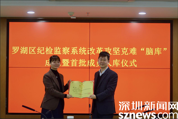讀特客戶端·深圳新聞網(wǎng)2022年2月12日訊(記者 吳艷 通訊員 曾林 陳心彤)近日,羅湖區(qū)紀委監(jiān)委召開區(qū)紀檢監(jiān)察系統(tǒng)改革攻堅克難“腦庫”成立(以下簡稱“腦庫”)暨首批成員入庫儀式,22名紀檢監(jiān)察干部入選首批“腦庫”成員。區(qū)委常委、區(qū)紀委書記、區(qū)監(jiān)委主任姚文勝向成員代表頒發(fā)聘書并作講話。