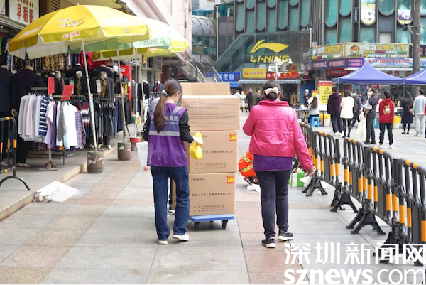 據(jù)悉,在市、區(qū)指揮部領(lǐng)導(dǎo)下,東門街道成立了專項疫情防控指揮部,設(shè)置11個工作組。全街道共設(shè)置了8個臨時核酸檢測點和2個防控區(qū)內(nèi)人員核酸檢測點,開展全員核酸檢測工作。在核酸檢測點,檢測通道分為綠碼與黃碼通道,現(xiàn)場工作有序開展,居民自覺遵守規(guī)定,間隔一米排隊。羅湖醫(yī)院集團工作人員,正在運送補給物資。