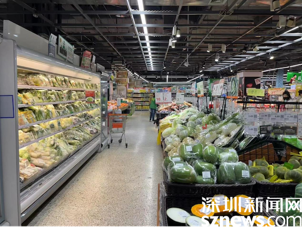 最后,記者走訪了周邊超市,看到蔬菜瓜果一應(yīng)俱全,供應(yīng)充足。