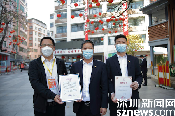 在當天的捐贈儀式上,袁志雄代表團市委為中建八局華南公司頒發(fā)了捐贈證書;丘志代表街道接受捐贈,并向中建八局華南公司送上了感謝信,感謝公司對疫情防控工作的大力支持。