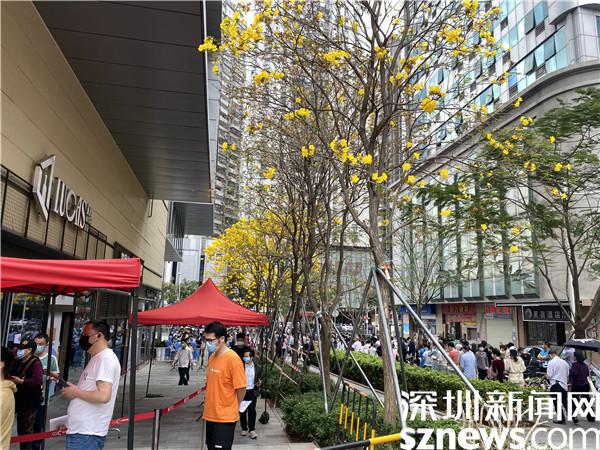 在國速中心廣場,黃花鈴木開得正好,藍天白云下是有序的核酸檢測隊伍,“大白”和“小藍”們正忙碌不停。據(jù)悉,這是桂園街道所屬的松園社區(qū)的一個核酸檢測點,地處于商業(yè)旺區(qū)附近,人口較多,所以核酸檢測隊伍也相對其他核酸檢測點長。羅湖區(qū)政協(xié)委員、深圳市國速房地產(chǎn)開發(fā)有限公司董事長黃少兵表示,這個核酸檢測點從1月初就設立了,“由于國速中心廣場較寬敞,滿足了通風和人流需求?!?/p>